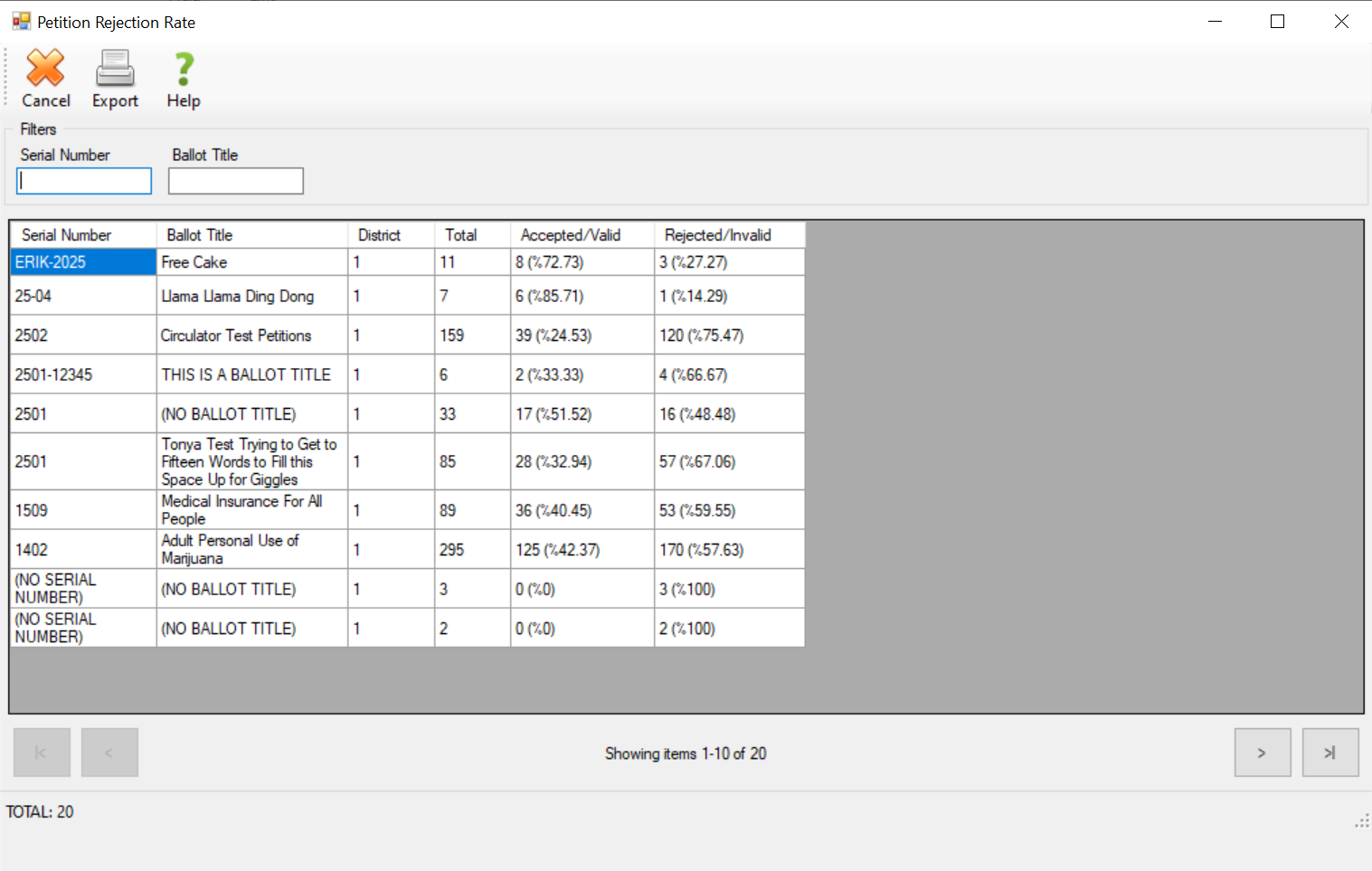 > Petition Reports > Initiative Petition Rejection Rate Report