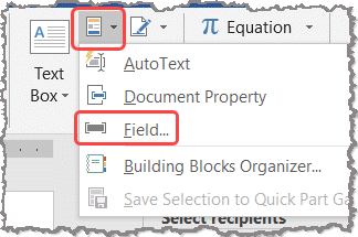 - Where a mail merge field is needed, position the cursor where the field is to be located, click Insert Merge Field on the Mailings tab, and select from the available list.