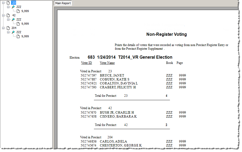 This report lists the voters whose voting history was obtained through non-register voting history entry.