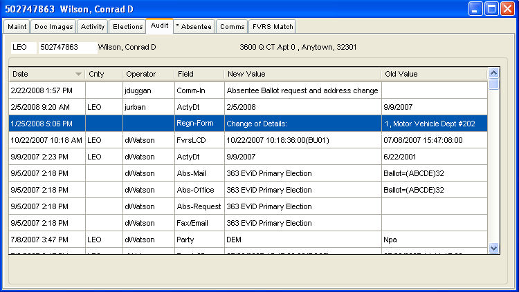 To access: VOTER REGISTRATION > Voter Maintenance > {voter} > Audit
