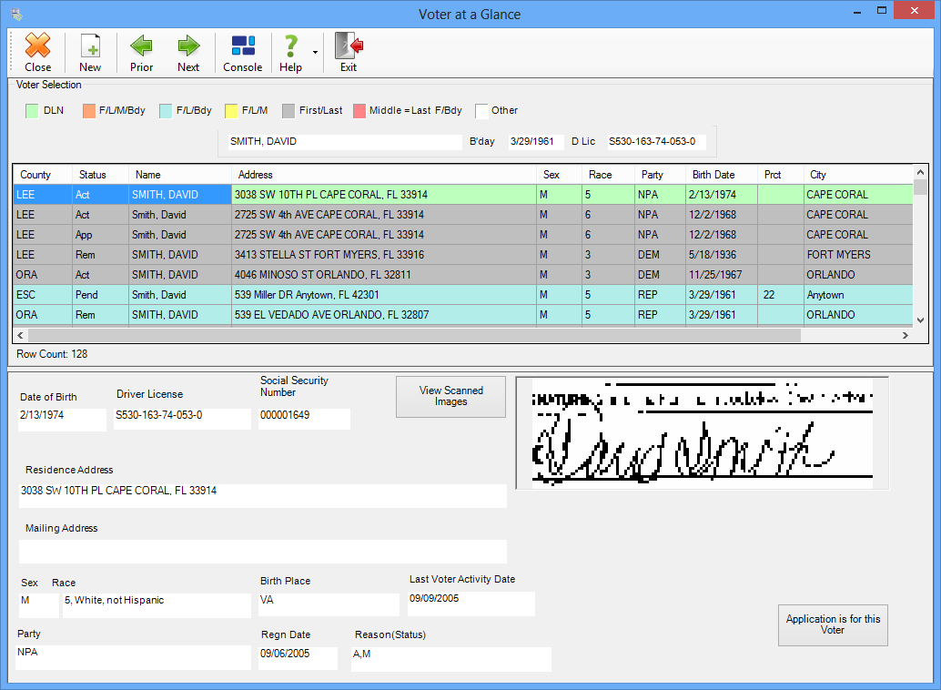 To see all images of the voter's signature on file, in addition to the clip displayed on this dialog, click View Scanned Images.